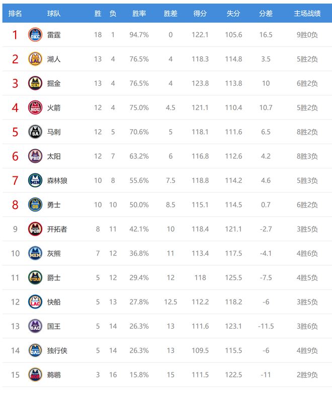北京时间2025年11月27日,今日NBA有9场比赛,勇士、火箭、雷霆、马刺、开拓者、太阳、森林狼、灰熊、国王、鹈鹕参与其中,赛后西部排名发生了变化。